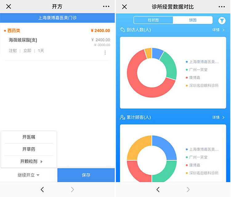 优秀的管理系统是未来中医馆发展的核心竞争力,人工智能,连锁合作,会员、积分、套餐等引流裂变,都是中医馆进行市场竞争的必备条件,好的SaaS系统可以帮助中医馆实现标准化医疗服务、客户管理、市场运营,降低管理难度和成本。康博嘉云诊所“中医版”支持会员折扣、积分抵扣、套餐拼团等多种营销模式,可以通过全方位数据分析,帮助中医馆了解患者信息,精准销售。