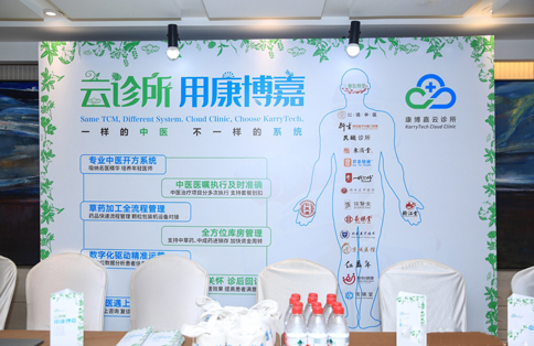 康博嘉“云诊所”绿色的背景板超吸睛,医学人体图更让中医人倍感亲切。