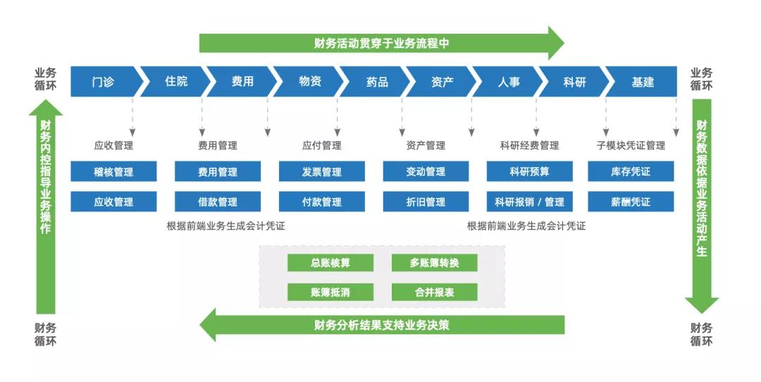 康博嘉智慧管理解决方案提供专注医疗行业的HRP平台,通过精细化财务核算、全生命周期供应链管理、多方位人事管理等核心模块,一体化提高医疗机构管理效率;以全面预算、成本管控、运营数据中心,帮助医疗机构预测经营趋势,升级管理理念;更能建立集团共享中心,实现自上而下的资源统管与规模化集团发展。 核心特色 1.业财融合全流程追溯 康博嘉HRP实现从预算、采购申请、采购订单、入库、使用消耗、发票、付款、到财务凭证的全流程数字化管理;随业务自动产生凭证,单据嵌入审批工作流,业务信息流始终与财务流合二为一,财务账可以直接追溯查看业务账,助力医疗机构搭建业财融合的闭环管理。 2.智能应用让财务工作更高效