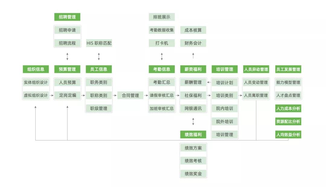 实现供应商生命周期管理、资质证照管理、供应商绩效考评,提供在线协同流程审批,在线寻源等功能,助医疗机构提高供应链效率,降低采购成本,保障采购质量。 5.功能全面的人事管理